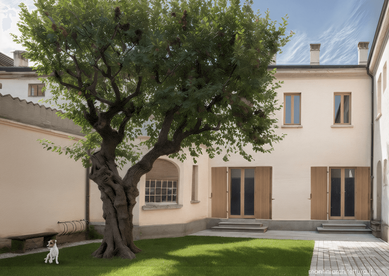 Le nuove quote del piano terra rendono necessario il rialzo del cortile su via Oriani, portandolo a quota adeguata ed eliminando i gradini esistenti, così da renderlo fruibile come corte privata per le singole unità.