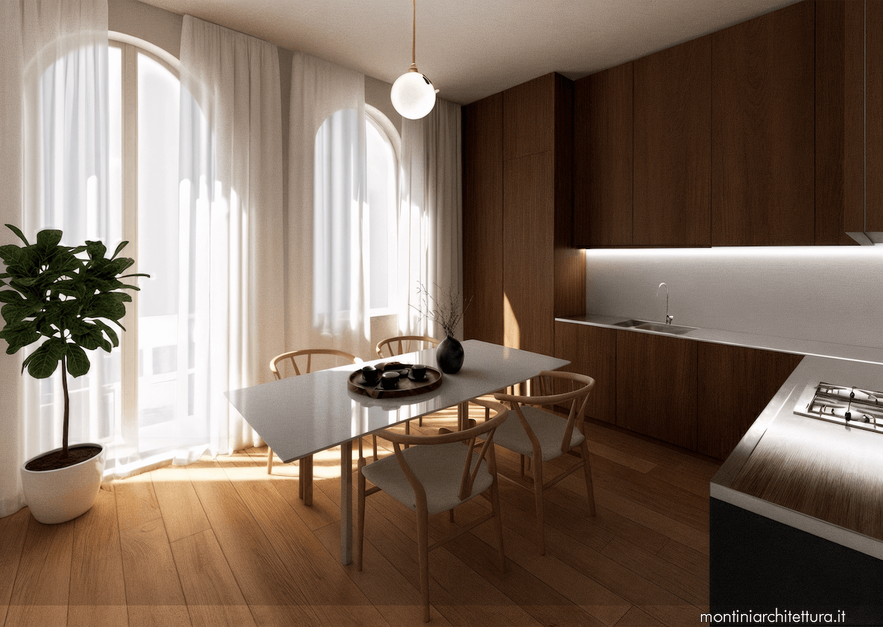 Per ciò che concerne la composizione interna dell’edificio nei piani fuori terra, nel rispetto stesso del fabbricato e secondo i principi del restauro, si effettuerà una ridefinizione generale al fine di adeguare gli ambienti alle nuove necessità del vivere quotidiano. L’attuale organizzazione, che rispecchia gli usi e costumi del vivere dell’Italia del dopoguerra, rappresentano un obsolescenza funzionale oltre che, in molti casi, non rispettose nelle norme igieniche ora vigenti